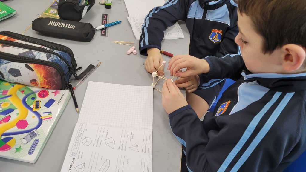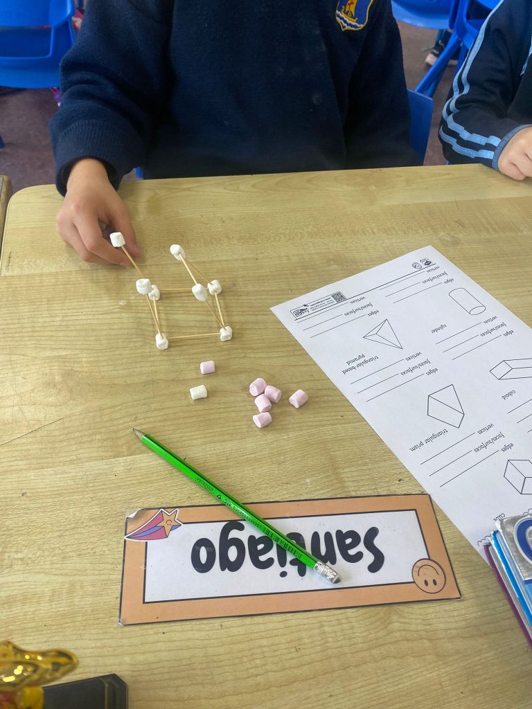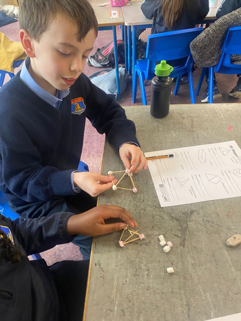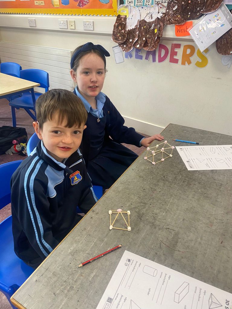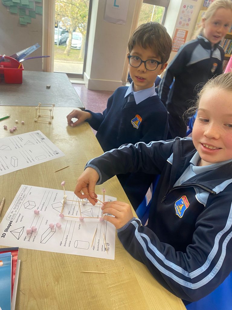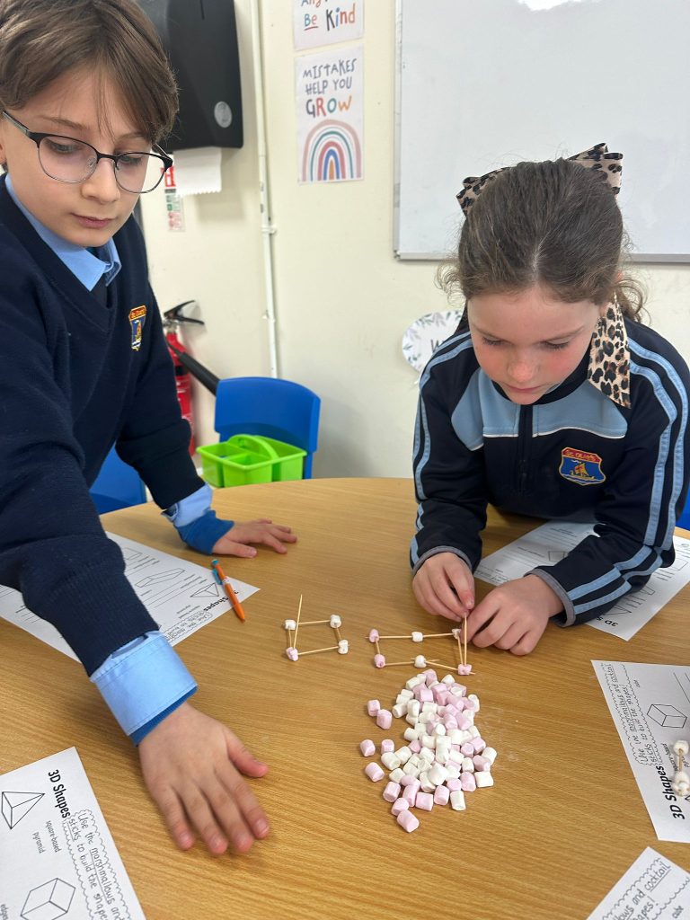 Ms. Leavy and Mr. Kearns' class were busy last week learning all about 3D shapes. On Friday they constructed their own using marshmallows and cocktails sticks!
