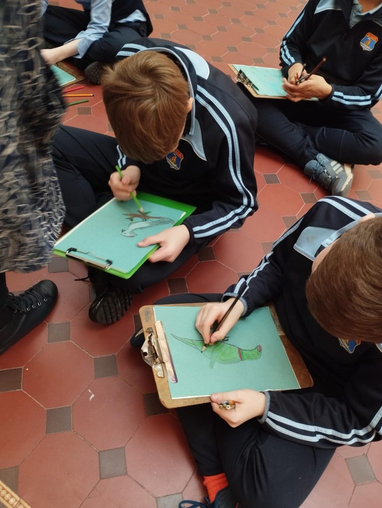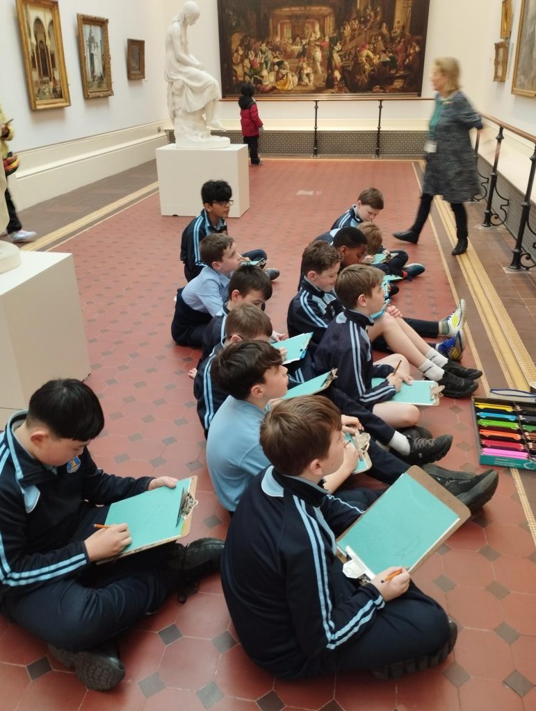 Mr.Duignans 5th class went on a trip to the National Gallery of Ireland. They were on a sketching tour and sketched different objects in the gallery looking at stroke and texture.