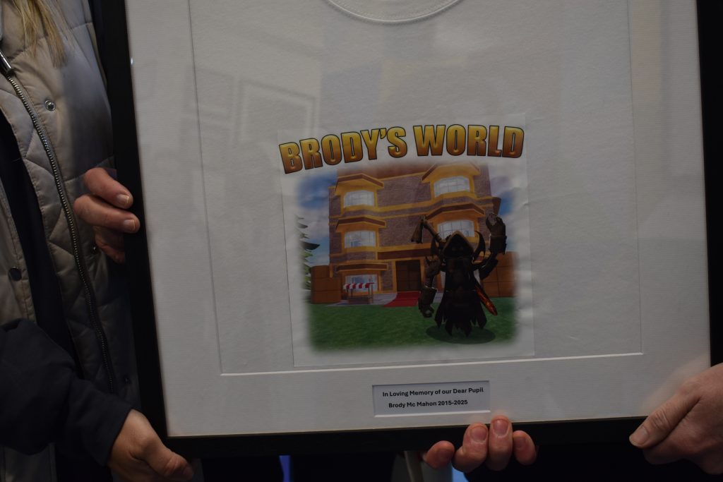 During the event, we also unveiled a framed t-shirt now displayed inside the school entrance. The shirt features the Roblox game that Brody created over the summer, a wonderful reflection of his creativity and enthusiasm. The game is available on Roblox and continues to be developed further in his honour.