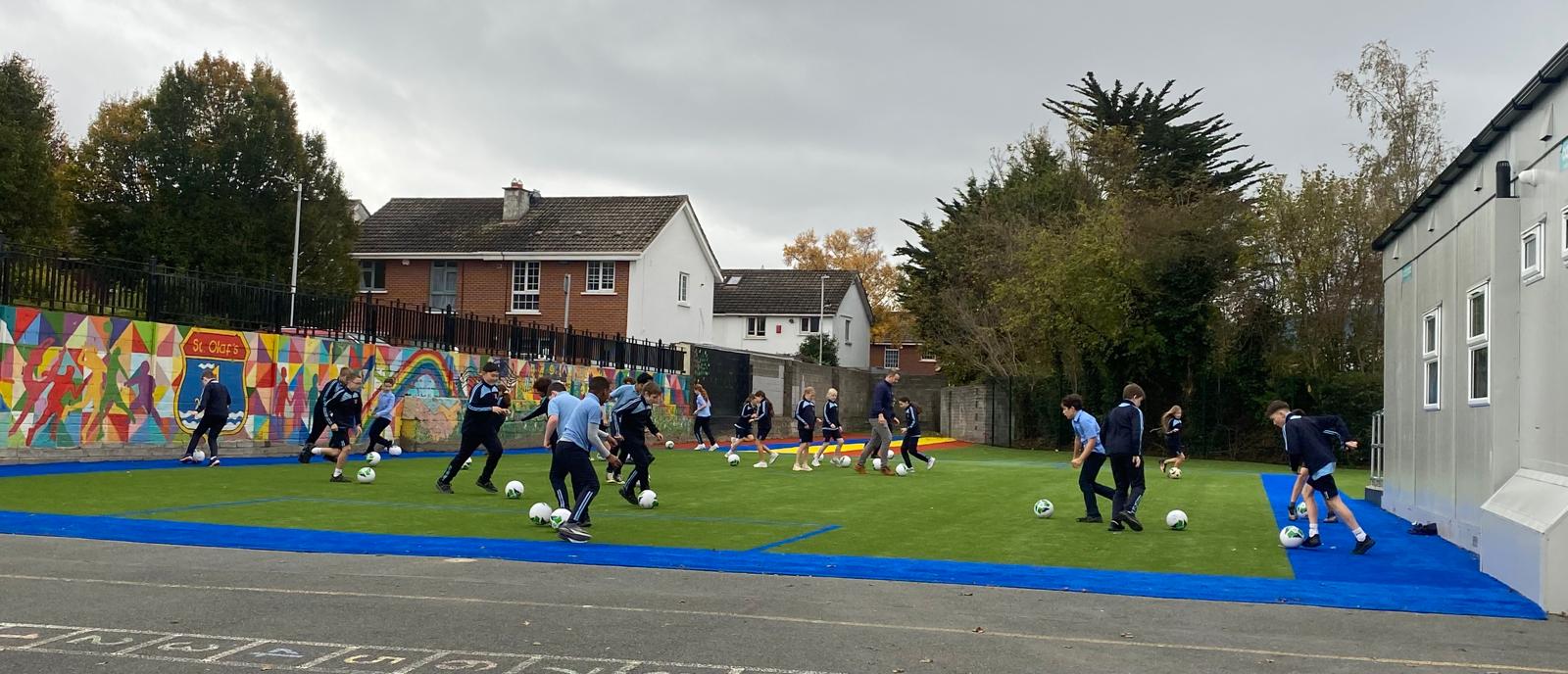 We were delighted to recieve a set of 24 Futsal footballs from the FAI recently. This will enable us to have a ball for each child in a class during a PE lesson about football.