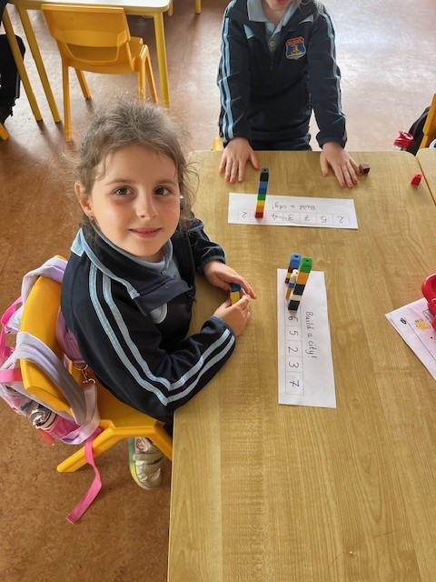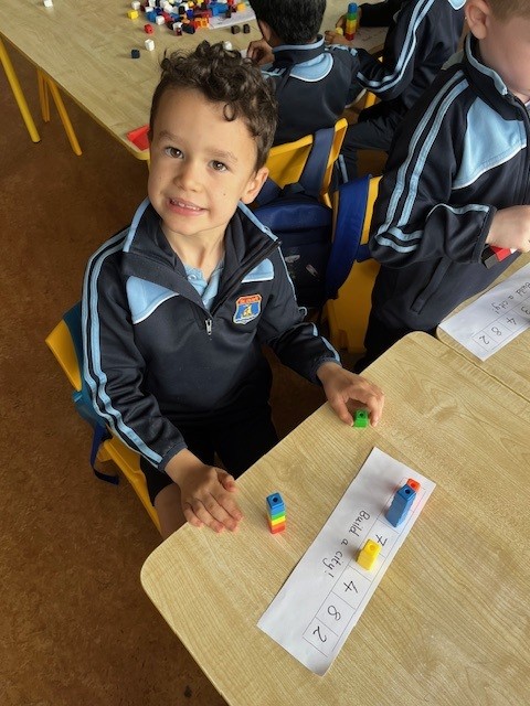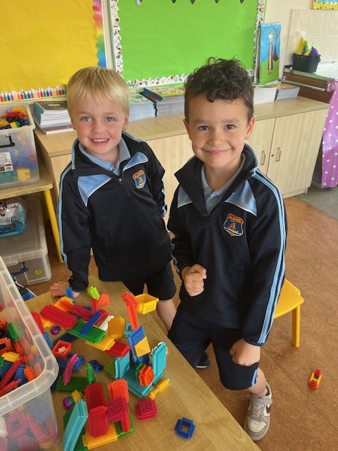 Ms. Sheane's class have been busy making amazing creations during free play time. They were also working on building cities in maths and naming farm animals as Gaeilge!
