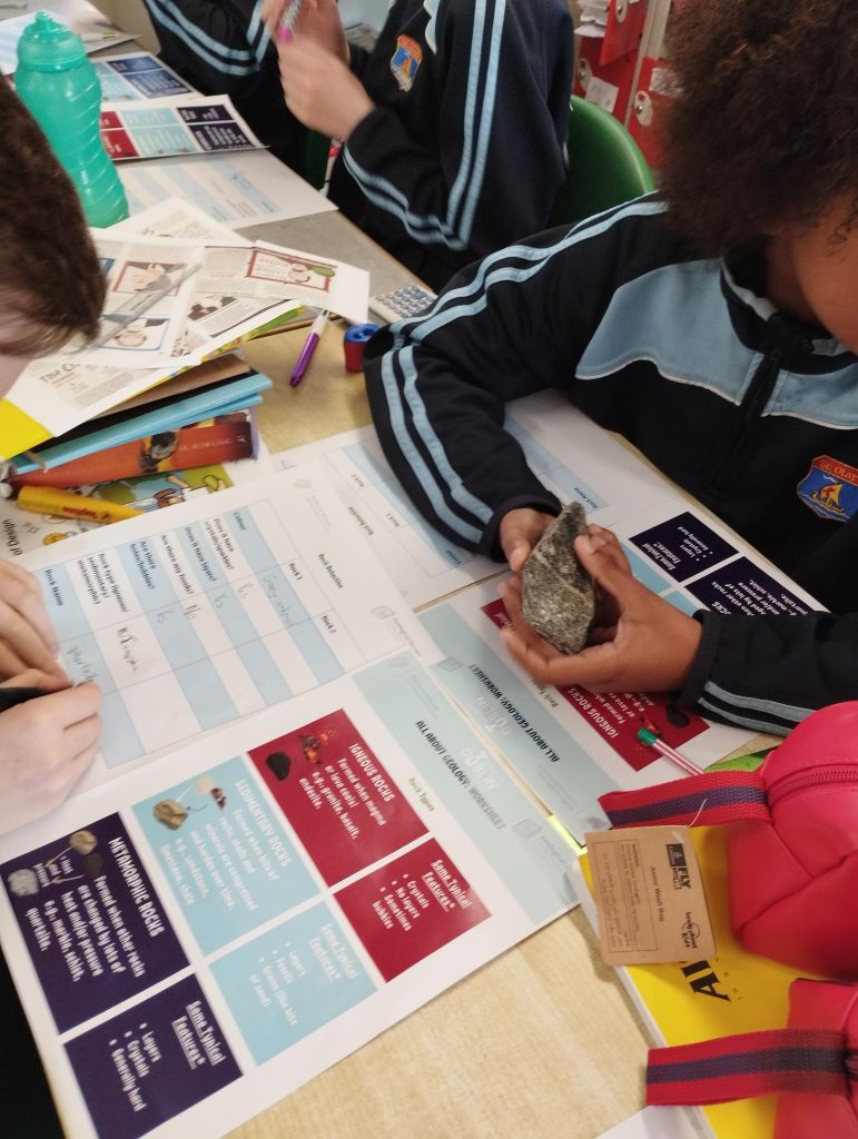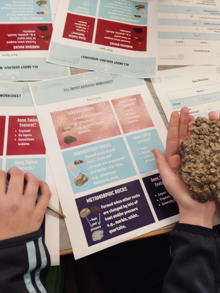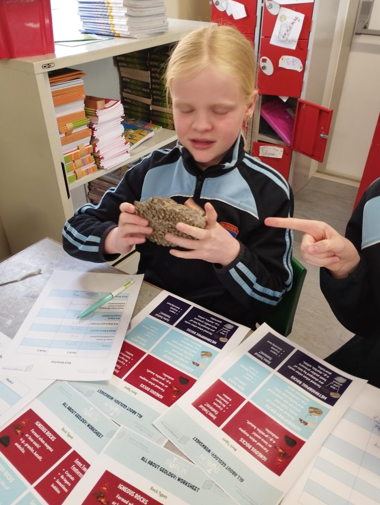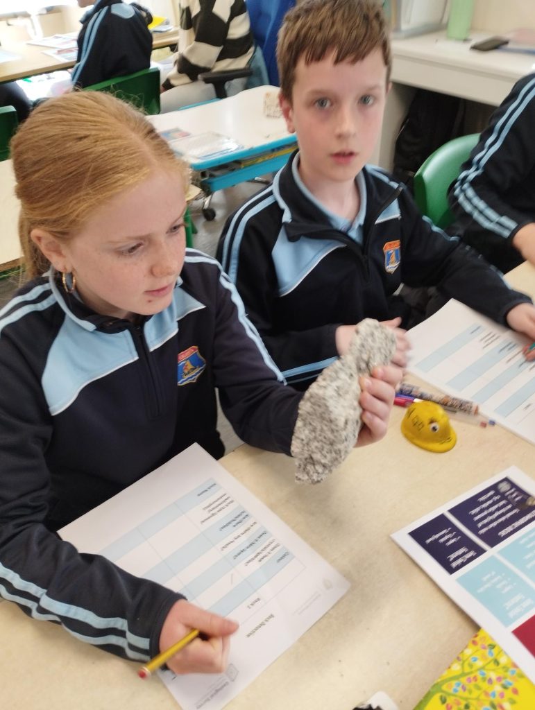 Last week Mr. Duignan's 5th class were lucky to have visitors from Met Éireann who completed a geology workshop with the class.