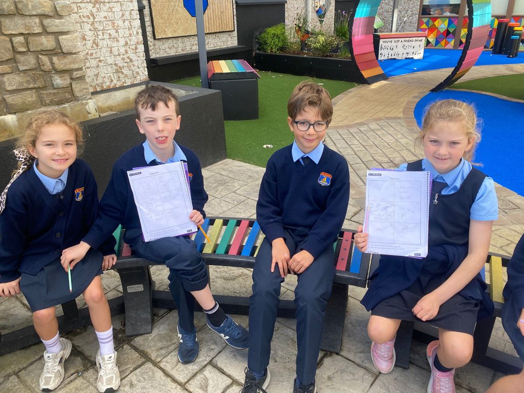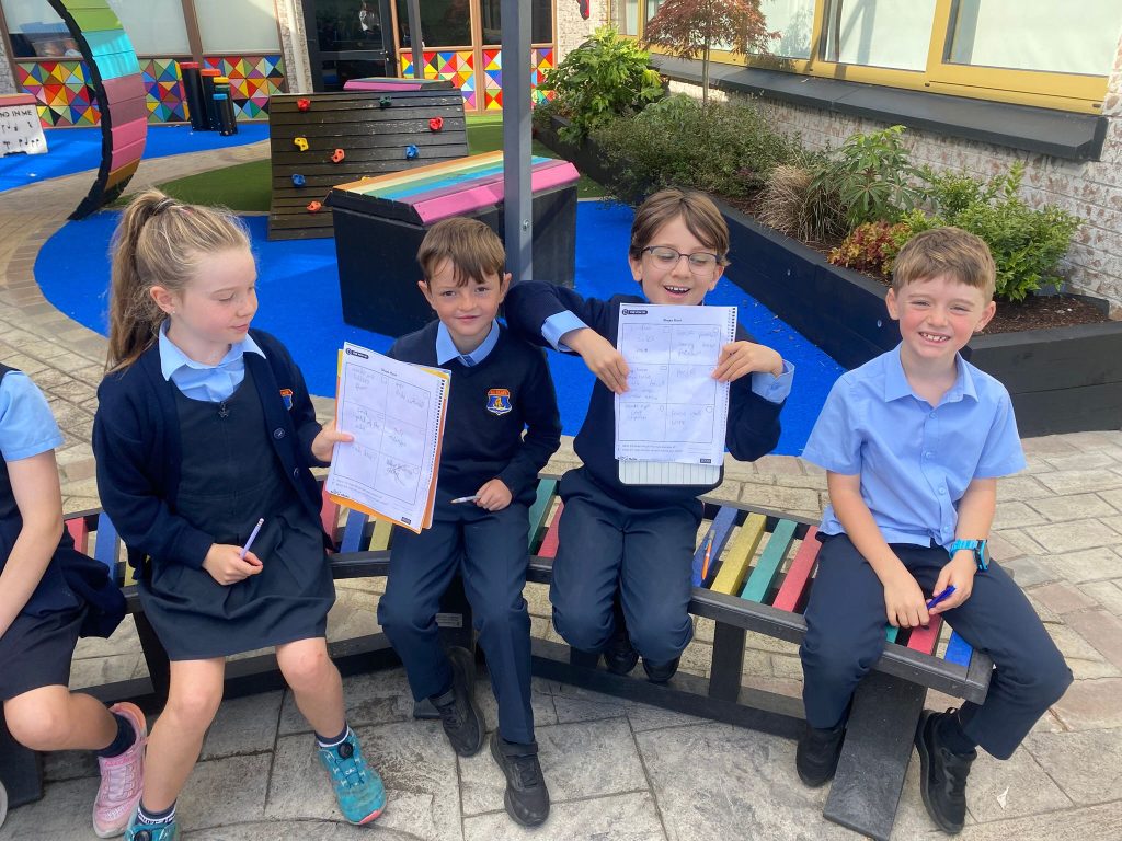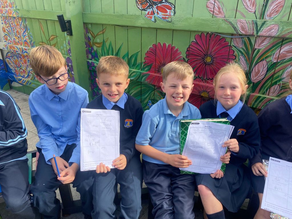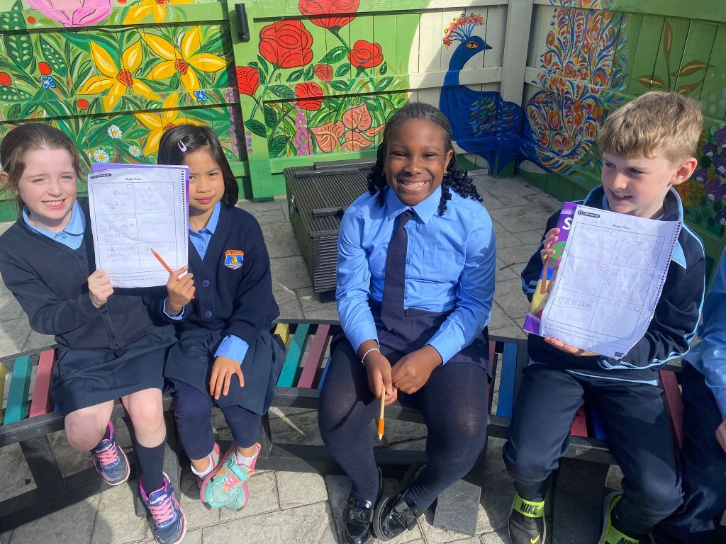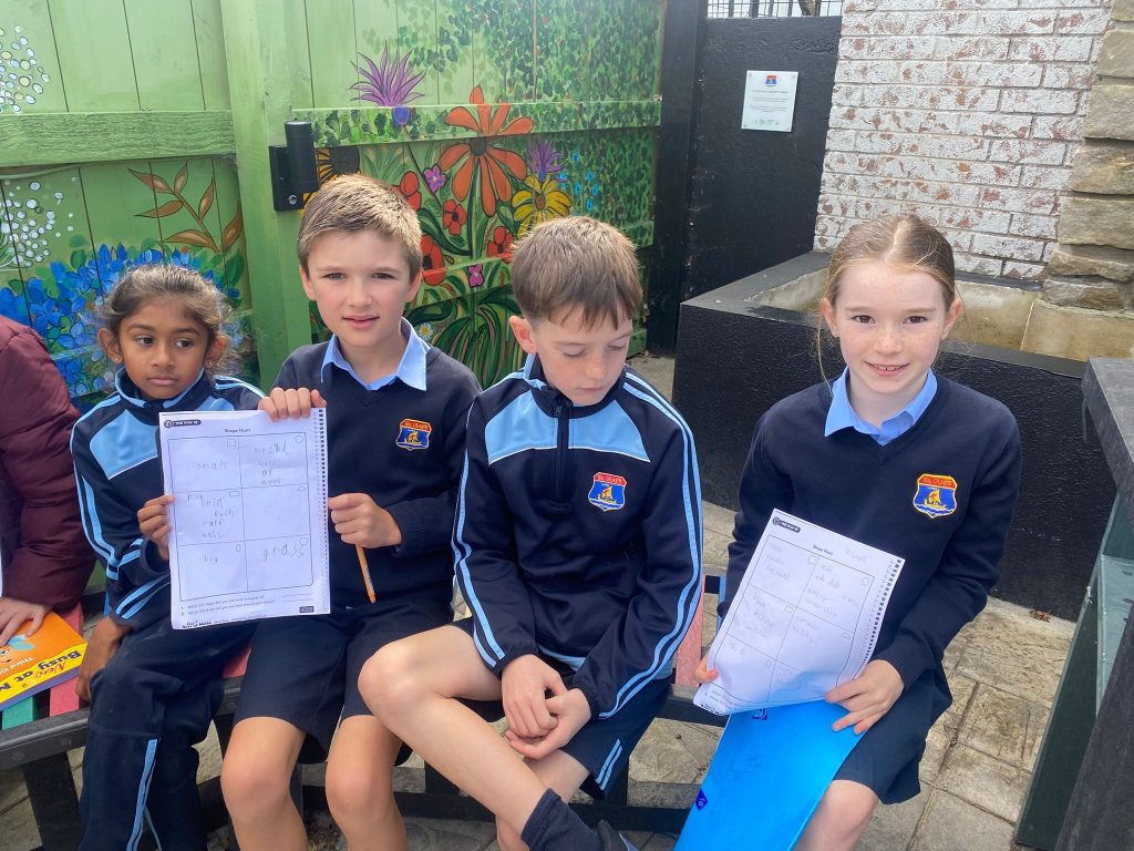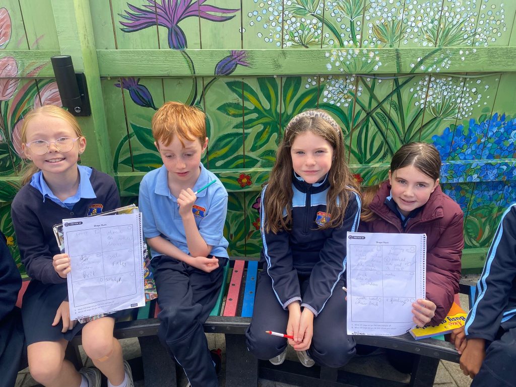 This week, Ms. Leavy’s 3rd Class went on a 2D Shape Hunt around the school grounds. The children used their Maths Eyes to spot shapes hidden in everyday places.