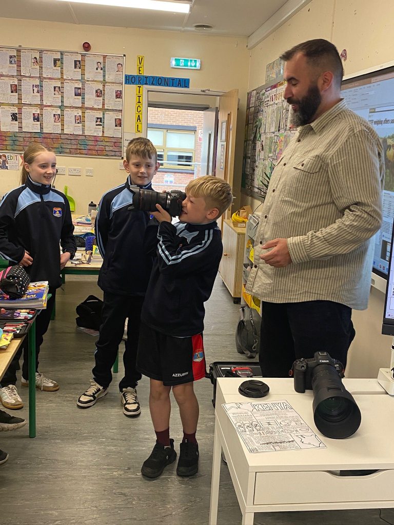 Mr. Barrett’s 5th Class enjoyed a fantastic visit from photographer Philip Doyle this week. The pupils learned all about the art of photography — from how to frame a great shot to the importance of light, focus, and creativity.