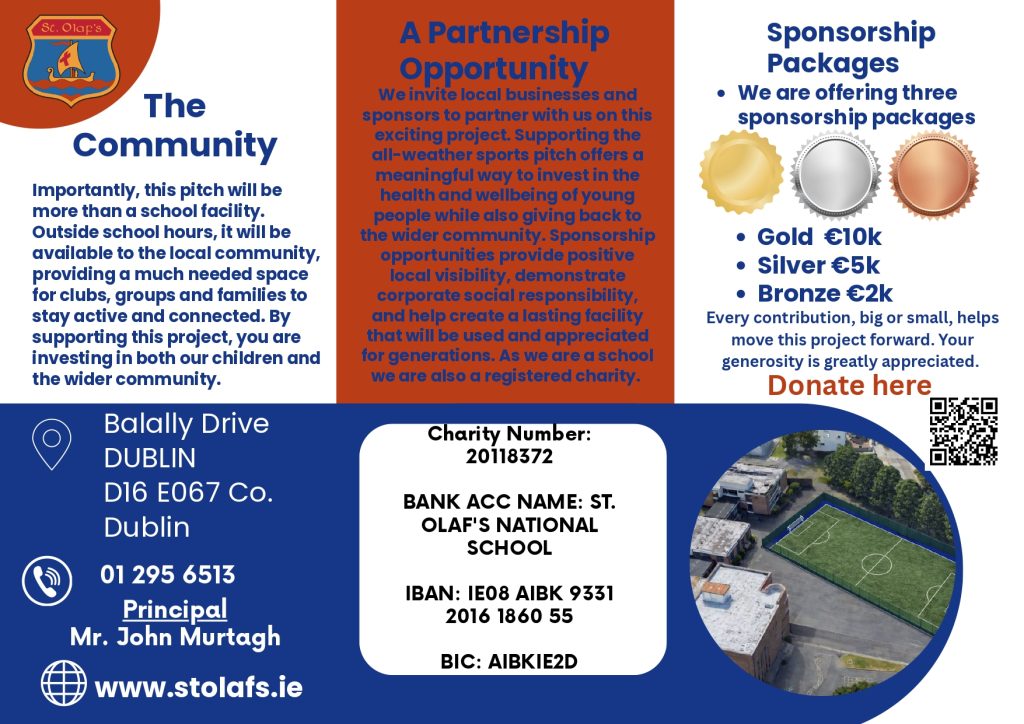 St. Olaf’s National School, a registered charity, invites your business to partner with us in an exciting development for our school and wider community.